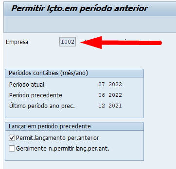 Selecionamos a empresa que desejamos saber se o período está diferido. Abaixo escolheremos a empresa 1002: